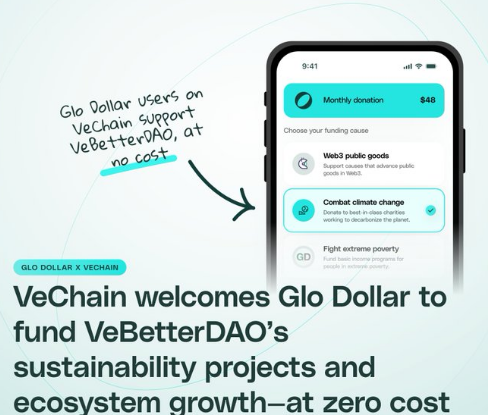 @glodollar is officially live on vechain. Glo Dollar is a stable coin tied to the US dollar - for every 1 backing it off-chain. That means you can finally swap from B3TR, VET or VTHO to a token that has significantly lower volatility. Plus, all profits they make go back into the VeBetterDAO treasury!