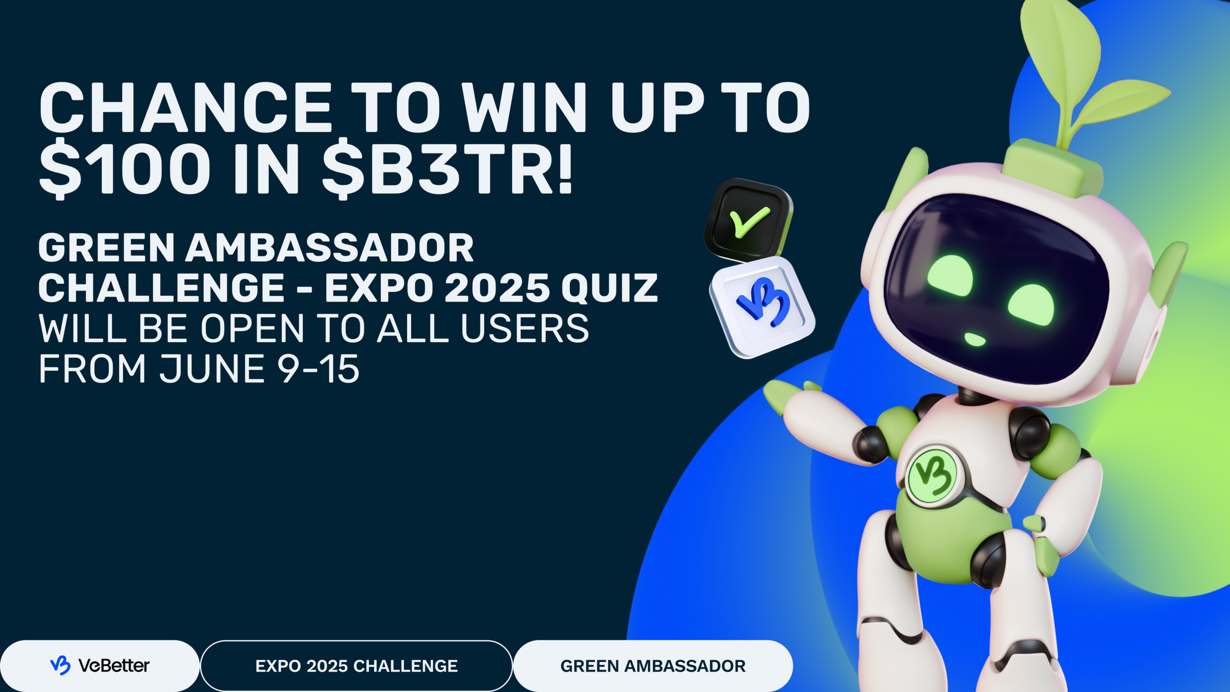 In addition, they have partnered up with @vechainofficial on the Vechain teamâs trip to Expo 2025 in Japan. Together, they have launched a limited time challenge where participants have a chance to win $100 in B3TR! Find the link in the sources below.